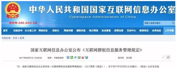 近日,国家互联网信息办公室印发《互联网群组信息服务管理规定》(以下简称《规定》)。国信办有关负责人答记者问时指出,《规定》所称互联网群组,是指如微信群、QQ群、微博群、贴吧群、陌陌群、支付宝群聊等各类互联网群组。